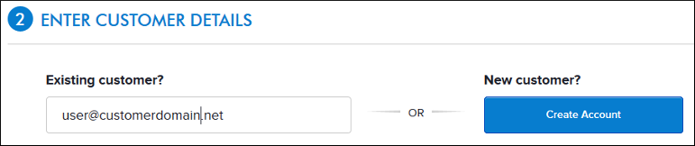 Here, you can simply enter the email address of the Customer you are purchasing this Product for. If it is a new Customer, click on the Create Account button and add the necessary details to create a new Customer account.