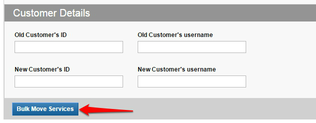 In the Menu, navigate to Products > Bulk Tools and then click Bulk Move Services.